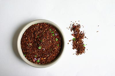 Koostisosad: rooibostee, värvilised suhkruhelbed, rosina- ja vaarikatükid.